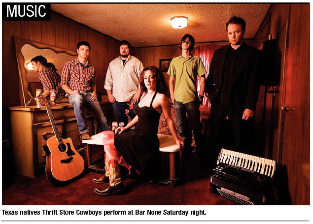 On Saturday Bar None brings the Lubbock, Texas-based Thrift Store Cowboys to the corner stage. The cool country sextet features pedal steel and fiddle along with the standard rock band instruments and comes off as a cross between indie-rock and country with a spacey feel and a strong lyrical vision. They just released a recording a few weeks ago called Light Fighter produced by Craig Schumacher who is also responsible for great records from Iron and Wine, Calexico and Neko Case.