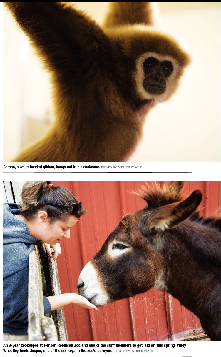 “Layoffs were the last thing we wanted to do,” says zoo director Talon Thornton, adding that most other line items took hits as well. He highlights the fact that salaries, before the layoffs, made up about $549,000 of the zoo’s $711,000 budget in fiscal year 2009-2010. With the layoffs, salaries will cost the zoo about $413,000, for a savings of about $136,000.