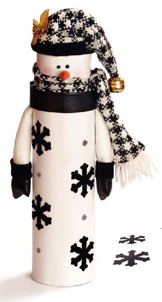 2. A simple snowman For a fun centerpiece that’s much cheaper than flowers or big candles, fashion a friendly snowman. Place a potato in the opening of a glass jar to form the snowman’s head. Cover entirely with felt or cotton quilt batting. Create a scarf, carrot nose, eyes and buttons from cardboard, paint and buttons. Voila!