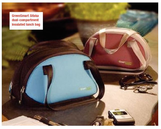 Modern men might like the decidedly unlunch-box-looking GreenSmart Sifaka dualcompartment insulated lunch bag made of Neogreene, an eco-friendly and non-toxic