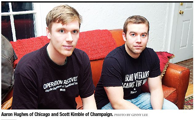Iraq War veterans Aaron Hughes of Chicago, Scott Kimble of Champaign, and Brock McIntosh of Normal spoke about Operation Recovery, which opposes sending troops with PTSD, Traumatic Brain Injury, and Military Sexual Trauma back into battle. Operation Recovery insists that traumatized veterans have the right to heal.