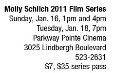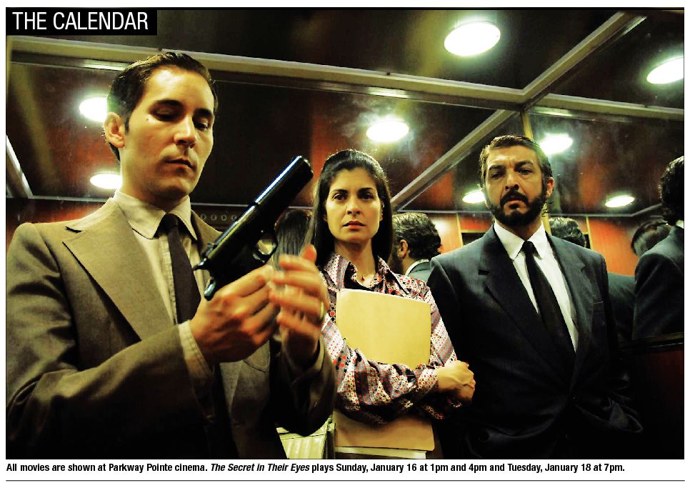 One of Springfield’s most popular annual events, the Molly Schlich Springfield Art Association Film Series, begins Jan. 16 and 18 and runs through April. Seven independent, international films cover the big screen each month at the Parkway Pointe Cinema. The Secret In Their Eyes, last year’s Academy Award winner for best foreign language film (Argentina), begins the lineup. It is an engrossing drama about a retired detective who, under the guise of writing a book, revisits an old case that continues to haunt him. Other films include: Last Train Home (Canada/China), a documentary; Mademoiselle Chambon (France) triangle love affair; Undertow (Peru) story of a fisherman with captivating scenery; Mother and Child (USA), stellar cast and motherhood; Made in Dagenham (UK), Ford Motor Plant strike; My Dog Tulip (USA), animated film. Passes are available at the box office or from the SAA.