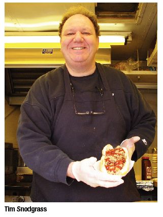 Tim Snodgrass, who owns and operates Big Belly BBQ, is as gregarious as he is genial; talking with him has proved to be part of what makes BBB special. By the time I left that first day, I’d learned that he gets his bread from Fazio’s Bakery, and his Italian sausages and spices from Viviano’s, both in St. Louis’ Italian Hill neighborhood; and that he lives in Carlinville.
