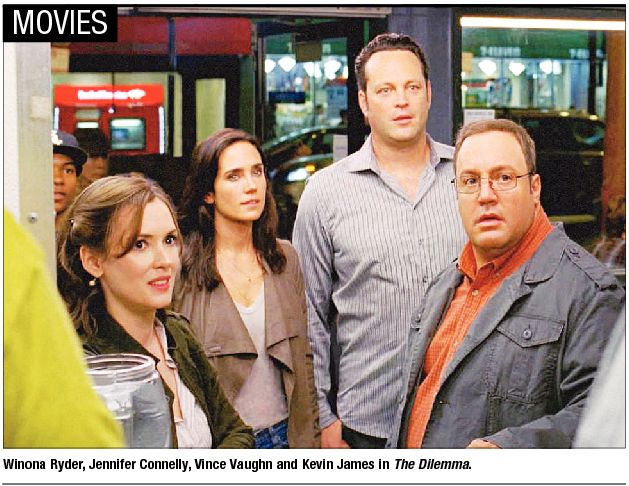 A Dilemma in more ways than one FILM | Chuck Koplinski I have a feeling that the title of Ron Howard’s new movie took on multiple meanings for the versatile director. While making successful comedies and dramas is nothing new for the filmmaker, The Dilemma suggests he simply didn’t know how to approach this material. While the film’s premise is pitched as a comedy, its story is a bit too messy to be taken as a lark. As its darker undertones sneak in, the mood of the film shifts to something more than a bit uncomfortable. Ronny and Nick (Vince Vaughn and Kevin James) are best friends and business partners whose company is on the verge of a major success. However, when Ronny sees Nick’s wife Geneva (Winona Ryder) in a hot embrace with a tattooed himbo (Channing Tatum), he finds himself dealing with a crisis of conscience. Should he tell his best friend about his discovery or keep it all under wraps to spare his feelings? While wrestling with this, Ronny himself becomes a bit of a liar, keeping from his girlfriend Beth (Jennifer Connelly) all that he’s going through and winding up in uncomfortable predicaments because of it. The film is funny at times, in a boyish adolescent way. How much you enjoy the film depends on how much you like Vaughn’s overbearing boyish act. For me, a little of him goes a long way and here, he goes too far. What seals the movie’s fate, however, is its final act, which gets a bit too serious for its own good. Howard bungles the transition as the shift in tones is much too sudden and the film’s halves don’t make a whole. Had the movie been presented as a broad comedy of manners or in the similar vein of Vaughn’s underrated The Break-Up, this project would have posed no dilemma at all for those saddled with making it. Contact Chuck Koplinski at [email protected].