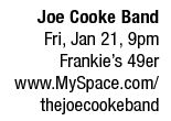 BAND SPOTLIGHT | Joe Cooke Band From a stint at Berklee College of Music, where he hung with fellow student and future legendary guitarist Al DiMeola, to years as Springfield’s reigning rock guitarist in the ’70s, and from a run as sideman to blues-rocker Jerry Doucette of “Mama Let Him Play” fame, to his Nashville years with St. Louis native Greg Guidry, Joe Cooke has played his guitar as naturally as taking a breath. After a short recess in the ’90s, Cooke formed the group that bears his name and continues performing all around central Illinois, doing that JCB trademark sound of high-energy classic rock and fiery electric blues. Bands associated with Cooke from Springfield’s early rock-n-rolling days include Dean and the Sinisters, Hot Ice, Rold Gold, the Plains and Sky High. More recent recipients of Cooke’s bodacious talent include Ragged Jack, Thin Ice and Blues Power among others. The current lineup of JCB contains area stalwarts Eric Tinsley (bass), Dan Shaughnessy (drums), Brad Durbin (lead vocals) and Joe covering the electric guitar like nobody’s business. See also
