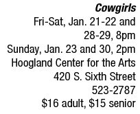 THEATER | Classic country kicker Small town waitresses (and want-to-be country songsters) all want to save the bar they work at by singing up lots of cash. Jo, the owner’s daughter, has her head focused on a group that will bring in a crowd, but mistakenly books a band of classical musicians. Who will save the day? This entertaining “classic versus country” production stars Ann Collins, Mary E. Myers, Sherry Frachey, Cathy Doyle, Kayla Primm and Tamara Bivens (all pictured). Don Russell and Kate Rossi direct.