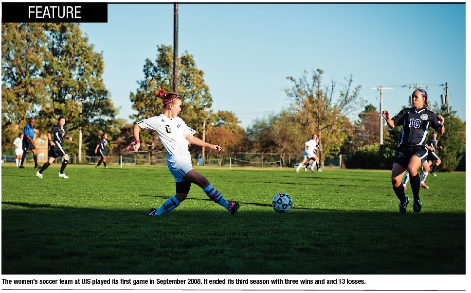 To help stabilize the athletics budget and reduce its reliance on student fees, UIS is working toward a reinforced fundraising strategy, says Scott Reed, assistant director for athletics communications. To help integrate the athletics department with the rest of campus, student-athletes and faculty are working on several initiatives, says Dr. Marcel Yoder, faculty athletics representative and professor of psychology. “The participation in any co-curricular activity … is an important part of these students’ lives and that importance needs to be recognized,” he says. To meet that end, he’s working to partner faculty members with athletic teams in a sort of mentor program, in which faculty members attend practices and games to see what it’s like to be a student athlete. “Faculty will get an idea of what student-athletes’ lives are like, of the pressure on coaches. … It also will give student-athletes and coaches a broader perspective of how faculty thinks about academic performance and athletics.”