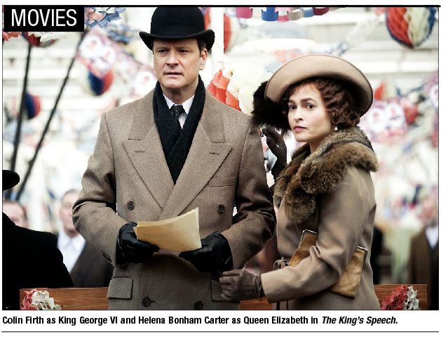 While this is the setup of Tom Hooper’s compelling and poignant The King’s Speech, it’s the extraordinary efforts the king goes through to tame his stammer and the unusual friendship that develops from it that gives it its heart. At the urging of his wife, the Duchess of York who becomes Queen Eliabeth (Helena Bonham Carter), her husband, Prince Albert (Colin Firth) – later King George VI – reluctantly falls under the tutelage of speech therapist Lionel Logue (Geoffrey Rush). Unorthodox in his methods and his manner – he insists on being treated as an equal when they are in session – these two enter into an arrangement that proves beneficial for both in unexpected ways.