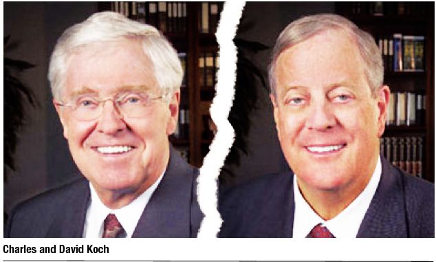 For more than three decades, Charles and David Koch have been quietly funneling tens of millions of dollars from their industrial fortune into the Cato Institute, Federalist Society, Heritage Foundation, Americans for Prosperity, FreedomWorks and dozens of other right-wing organizations set up to push their extremist laissez-faire agenda of plutocratic rule. From behind their plush curtain, they’ve operated as the right wing’s Wizard of Oz – only Ozzier.