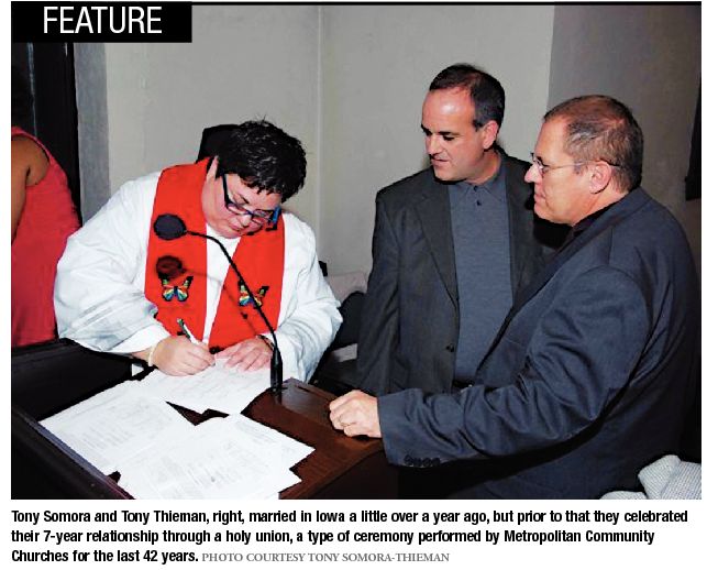 While Illinois’ civil union law has solved a number of problems for same-sex couples, the LGBT community still faces several issues in terms of discrimination that won’t be solved by civil unions. Tadlock, for instance, is now in an employment dispute that started after she announced her marriage to Helstrom in the newspaper. In the announcement, Tadlock listed Benedictine University, a Catholic school, as her employer. According to the State Journal- Register, the university asked Tadlock to resign after she publicly announced her gay marriage. When Tadlock refused, the university reassigned her to a position for which she says she wasn’t qualified. The university says that, by turning down the new position, Tadlock resigned, but Tadlock says she was fired. Either way, the university backs its actions by citing an inconsistency between Tadlock’s public announcement and the Catholic faith. Religious organizations in many ways are exempt from samesex non-discrimination laws, including Illinois’ civil union measure.