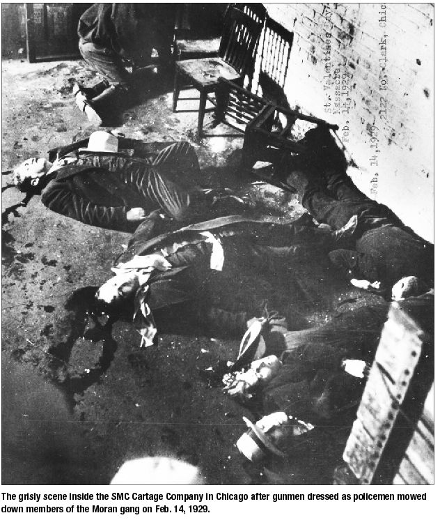 On Feb. 14, 1929, four men, some dressed as Chicago cops, stormed a north side garage near Lincoln Park which was a hangout and illegal booze distribution center for Bugsy Moran’s gang, a longtime rival to Al Capone and his gang. Both were trying to take over the city’s bootlegging biz during Prohibition, as well as other criminal rackets.
