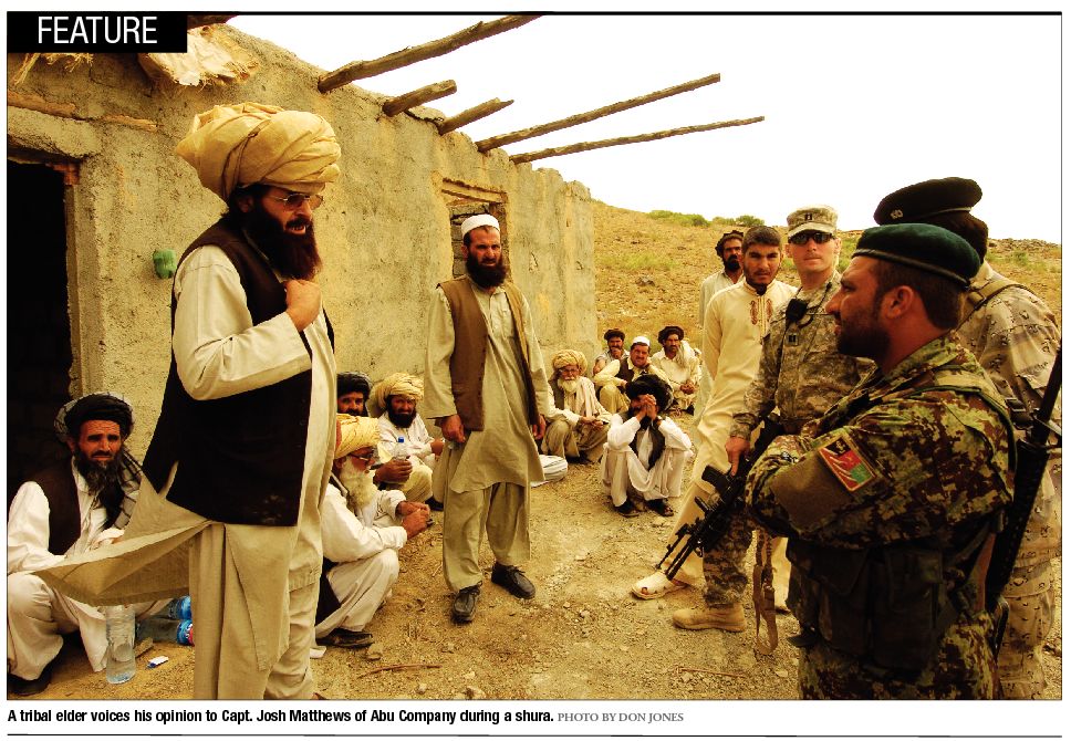 Beyond the geography and troop shortages, Abu Company’s mission is greatly complicated by tribal politics. Most of the smuggling routes in the region are controlled by the powerful Haqqani tribe. Through the generations, tribal groups like the Haqqanis have alternately fought and collaborated with the foreign powers and central governments that tried to control them. Clan and trade alliances go back centuries. When legitimate trade didn’t bring in enough money, the clans turned to smuggling and drug running.