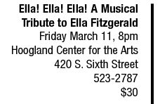 MUSIC | Jazz divas salute Ella Chicago jazz divas Frieda Lee, Spider Saloff, pictured, and Dee Alexander play tribute to the lategreat first lady of song, Ella Fitzgerald. The Windy City trio love Ella so much, and fell in love working together, that they took their tribute on the road. For tickets visit www.hcfta.org or phone 523-2787. For more info on these three singers visit www.spiderjazz.com, www.deealexander.net and www.friedalee.com. See also