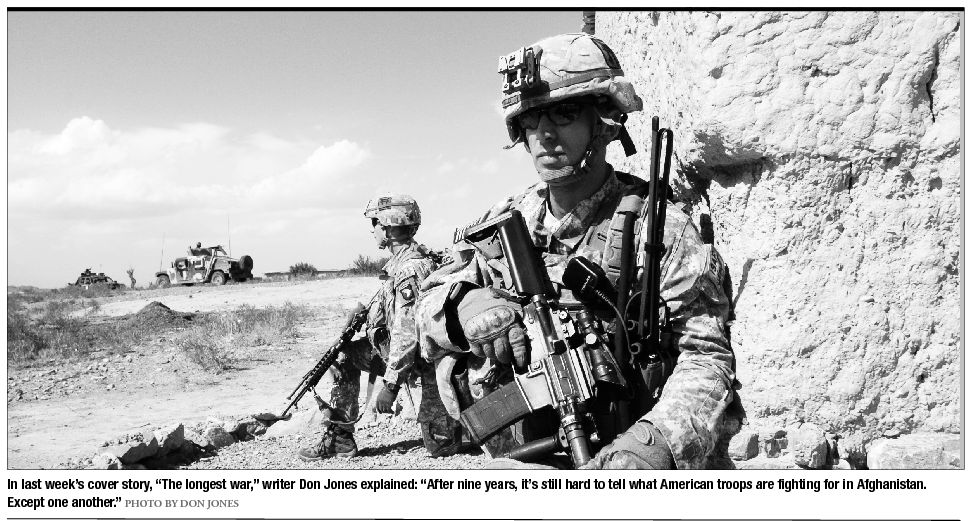 This invasion, as the article pointed out, has nothing to do with American scapegoat Osama Bin Laden. Nor does it have anything to do with Al-Qaeda or the Taliban. These are just scapegoats. The only reason the invasions will continue, long after you and I are long-since dead, is because the Republicans don’t want to deal with the ugly question of: “Why did we do it?” Norman Hinderliter Springfield