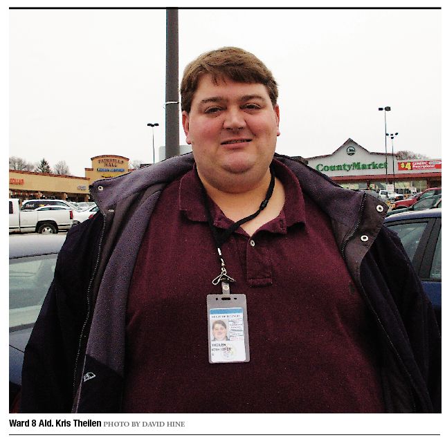 Theilen is supported by Laborer’s Local 477. He says he regularly polls residents for their input on key votes, like transferring money from the hotel/motel tax to keep employees from being laid off. Stout accuses Theilen of “raiding” city funds for other uses, but Theilen responds by saying that many Ward 8 residents were worried after employee layoffs were announced. They asked him to spend that money to reinstate city employees, he says.