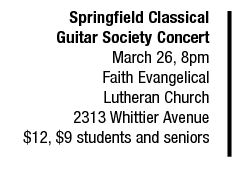 Stanley Yates is sure to wow the audience with sound and technique at the Springfield Classical Guitar Association’s next concert March 26. Originally from Great Britain, Yates is an international concert performer, arranger, recording artist and award-winner who also directs the guitar program at Austin Peay State University in Tennessee.