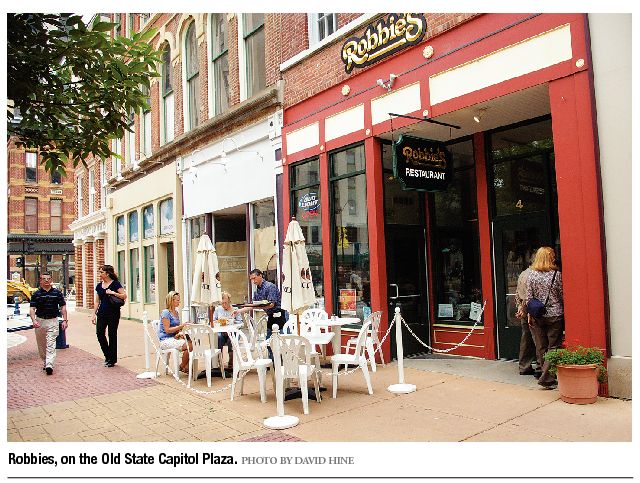 Here’s my list of Springfield’s best: The block of Sixth Street between Monroe and Adams and around the corner on the pedestrian mall facing the Old State Capitol boasts a number of outdoor venues. The old, mostly restored buildings and Old State Capitol Plaza give the area a unique ambiance. Robbie’s and The Feed Store face the Old State Capitol. Along Monroe Street, Café Brio recently added outdoor seating. The Trout Lily Café, Z Bistro, and Andiamo! are all open for breakfast. Lunch spots include all the above, plus Maldaner’s (whose planters make its outdoor seating area especially lovely), and the aforementioned Café Brio.
