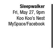 Sleepwalker cohorts Keith Dunlap (guitar, vocals), Kortney Leatherwood (drums, vocals), Rusty Koehler (bass, vocals) and Ted Russell (guitar, vocals) describe the group as “four friends, good music, good times” and prefer the intimacy and excitement of the bar scene for shows. The handy quartet does a dandy number on the rock genre by balancing classic bands, such as the Beatles and Led Zeppelin, Dire Straits and the Cure, with more contemporary groups like Green Day, Sister Hazel and the Black Crowes. Three strong lead vocalists allow for frequent set list re-workings, keeping the band fresh and the audience happy. In celebrating three years of band-dom, Sleepwalker wishes to extend a hearty thanks to fans, family and friends “for the help and support along the way” and to say, “you will always be in our thoughts.” Rock on, guys!