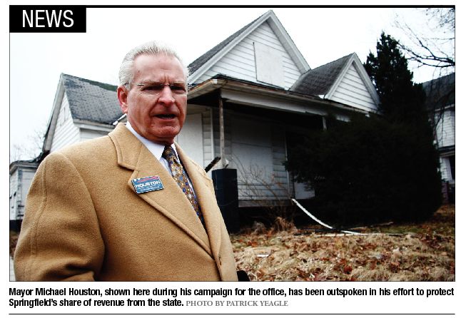 At a May 27 Citizens Club of Springfield meeting, Mayor Michael Houston told Senate President John Cullerton, the featured speaker, of his concerns that the state could hinder city services if cuts are made to the local government distributive fund.