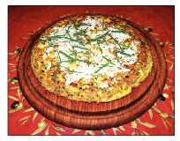Turn the tortilla onto a large platter. Cut into wedges or squares. Garnish with appropriate grated cheese or herbs if desired. Serve warm or at room temperature. Serves 4 as a main course, 6 or more as part of a tapas spread.