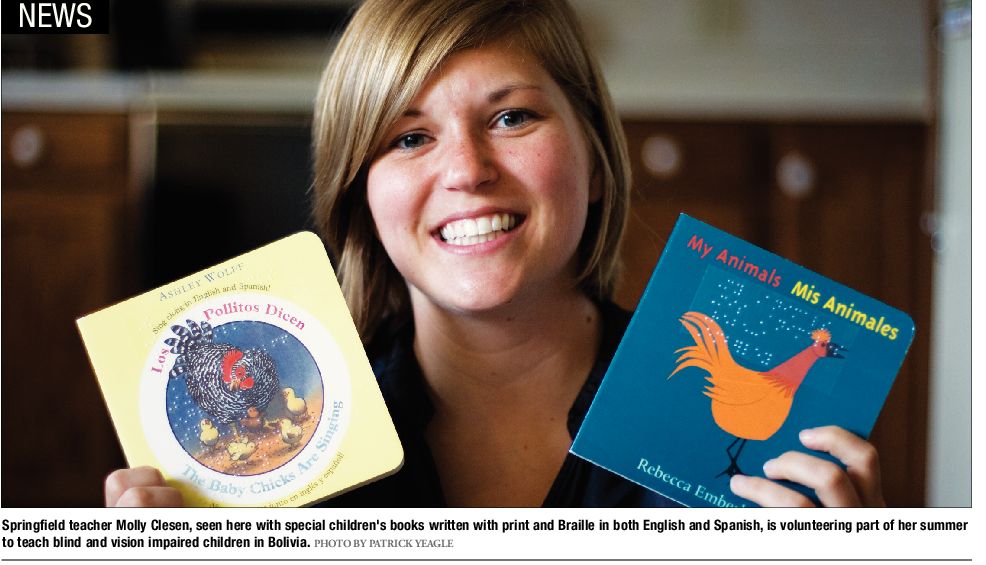 Clesen, a 26-year-old teacher of blind and visually impaired students in Springfield School District 186, is spending part of her summer teaching kids with vision impairments in Cochabamba (Co-cha-bomb-ba), Bolivia, a city of more than 608,000 people situated in a valley within the Andes mountains. Clesen just finished her first year of teaching in Springfield, after one year spent teaching in the Chicago suburbs and three years of teaching in Macomb. Though she originally had planned while attending Illinois State University in Normal to teach deaf and hearing impaired students, Clesen says a “very persuasive” academic advisor convinced her to try the program for teaching the blind.