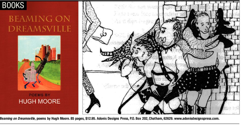 I first met Hugh Moore in Allen Ginsberg’s living room, which often served as an auxiliary classroom for Naropa Institute, home to The Jack Kerouac School of Disembodied Poetics. We spent a solid three hours discussing Ezra Pound’s poetics before going to the weekly poetry reading. At the time (1981), I was astounded (and very pleased) to meet a fellow poet from downstate Illinois in the bohemian badlands of Boulder, Colo. This brief encounter illustrates well Moore’s lifelong engagement with poetry; in the time since we first met, he has become a constant presence in Illinois poetry, earning numerous awards. His latest book, Beaming on Dreamsville, contains poems spanning nearly two decades. Published by Adonis Designs Press, the collection runs to more than 80 pages of finely crafted verse that demonstrates his ability to renew the forms of traditional, metered poetry and to innovate in free verse with equal daring and aplomb.