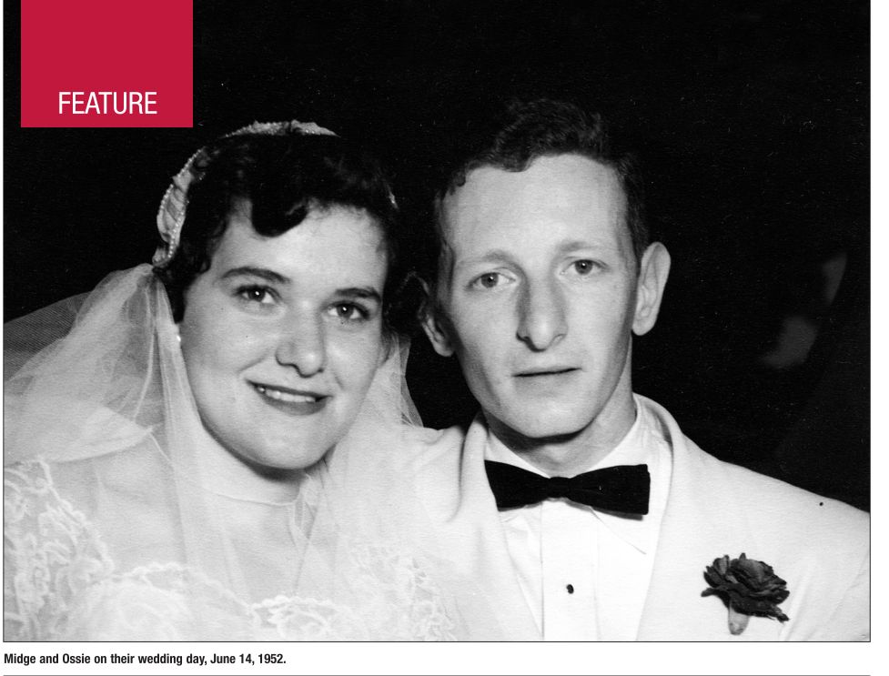 By 1944, Langfelder was eager to join the Army and fight for the U.S., even though he knew he had at least one cousin who was fighting for Germany. After two years in the Pacific theater of the war, he came back to Springfield. He was 20 years old. Within a week he was working at a downtown men’s clothing shop and buying chocolate bars at a nearby movie theater. The pretty teenage girl running the candy counter was Mary Agnes “Midge” Dunham. They were married five years later.“I was attracted to him because I knew he was good,” says Midge as they sit in their living room. “I guess you could say it was that thing they call love.”