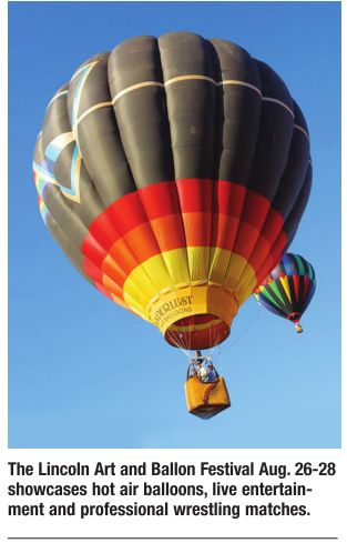 It’s easy to get carried away at the Lincoln Art and Balloon Festival. The event showcases hot air balloons, live entertainment and professional wrestling matches, as well as carnival rides, rock climbing, and children’s activities. Seventy-seven juried artists from a variety of mediums, 40 booths of handmade crafts, a flea market, and barbecue cookoff are on hand. Visitors can also attend the city’s annual flea market, wine tasting, and craft fair. Aug. 26-28. 217-735-2385. www.lincolnillinois.com A parade, demonstrations of corn shucking, husking bees and other activities are featured at Petersburg’s Annual Harvest Fest. Sept. 16 and 17. For details go to [email protected].