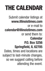 Prairieland Chautauqua Sep 02-05, 4-8pm, Historical reenactments, storytelling, lectures and music. 243-2423. Jacksonville Community Park, 1201 S. Main, Jacksonville.