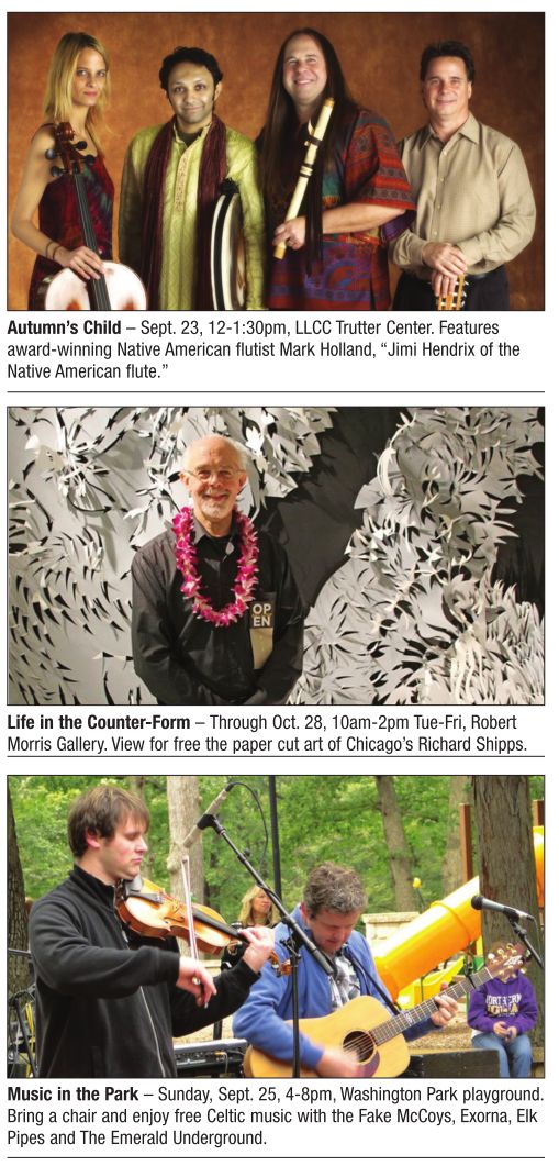 Autumn’s Child Sep 23, 12-1:30pm, Award-winning Native American flutist Mark Holland, known as ‘the Jimi Hendrix of Native American Flute.’ LLCC Trutter Center, 5250 Shepherd Road, 786-2789 .