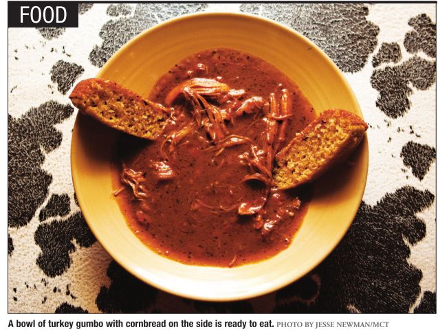I especially enjoyed demonstrating browning and caramelization when I was teaching cooking classes – not least because of the opportunity for some theatrics. “OK, everybody gather ’round,” I’d say, spearing the meat sizzling in a skillet, “Is this brown enough? No! It’s not nearly brown enough!” Gumbo, however, provided the real drama. There are almost as many variations of gumbo as there are cooks who make it, but all gumbos fall into one of three groups, depending on how they’re thickened: with okra, filé (ground sassafras leaves), or roux. Roux is a classic European mixture of butter or fat and flour, used to thicken sauces and gravies but not really as a flavoring. Louisiana Cajun and Creole cooks “kicked it up a notch,” replacing the butter with oil, and cooking the mixture to increasingly darker shades of brown, with increasingly complex and stronger flavors – from light tan to rich caramel, mahogany and, finally, black. Each shade of roux has specific uses and pairs with specific dishes. The best roux-based gumbos are made with black roux, according to Paul Prudhomme in his classic cookbook Chef Paul Prudhomme’s Louisiana Kitchen: “It takes practice to make a black roux without burning it, but it’s really the right color roux for a gumbo.”