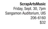 Five-piece Canadian ensemble ScrapArtsMusic brings reused items and industrial waste fashioned into instruments and innovative percussion and drumming music to Sangamon Auditorium, UIS. An energetic mix of metal and movement powered by muscle is sure to get your adrenaline pumping or interest piqued. Founder and musician Gregory Kozak is joined on stage by musicians Spencer Cole, Christa Mercey, Greg Samek and Malcolm Shoolbraid. Kozak wrote the compositions and built the 145 instruments with co-founder Justine Murdy who helped design the 4,000 pounds of inventive instruments and manages the band. Green never looked so gold. Music never sounded so melodious. See also
