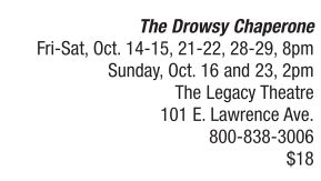Roxy Theatricals was granted the rights to produce the five-time Tony-award winning musical, The Drowsy Chaperone, which plays at The Legacy Theatre for three weekends minus the last Sunday. Laugh along with the modern-day musical theater addict, known only as Man in Chair (Ed MacMurdo, also the director), who watches the characters and set of The Drowsy Chaperone come to life in his apartment after putting the album on the record player. The storyline follows a 1920s Broadway starlet, Janet Van de Graaf (Anna Bussing), who wants to give up show business and marry her debonair, oil tycoon fiancé, Robert Martin (Cory Lee Blisset). Cynda Wrightsman plays the drowsy chaperone. Susan Collier choreographed. For more info visit www.atthelegacy.com.
