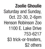 A safe place to trick-or-treat with the little ones this Halloween season is at Henson Robinson Zoo for the Springfield Park District’s Zoolie Ghoulie. The zoo opens at 2 p.m. on four Saturdays and Sundays, Oct. 22, 23, 29 and 30, for costumed crusaders and creatures. A popular and beloved event, stations are set up around the grounds where kids collect candy. A costume contest is held each evening at 5 p.m. More ghoulish fun that kids enjoy is a kids’ carnival area with games and prizes. Zoolie Ghoulie is sponsored by Capitol Radio Group. Remember to avoid the route over the Vachel Lindsay bridge. It is under construction until November.
