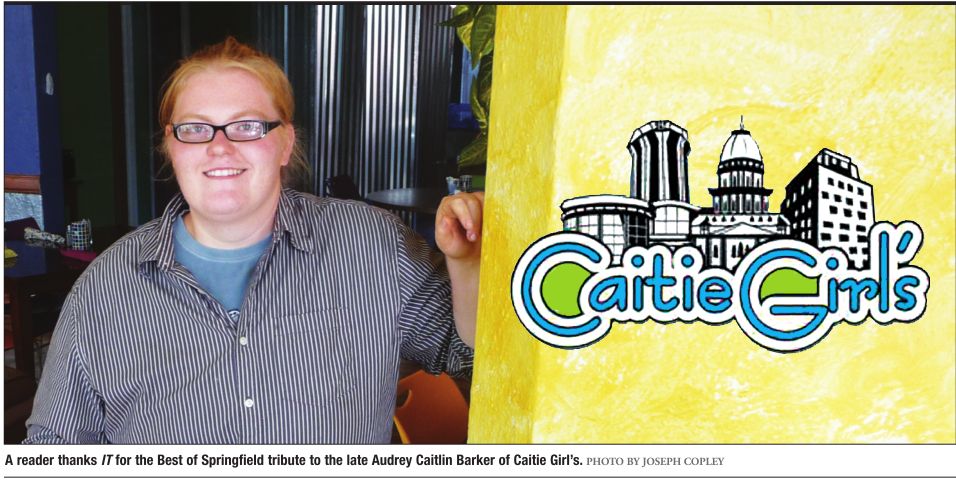 Thanks also for the tribute to Audrey Caitlin Barker. She was a gem, a Springfield original whose creative menus indulged our passions and stimulated our imaginations – a dangerous and delicious combination. We will miss her.