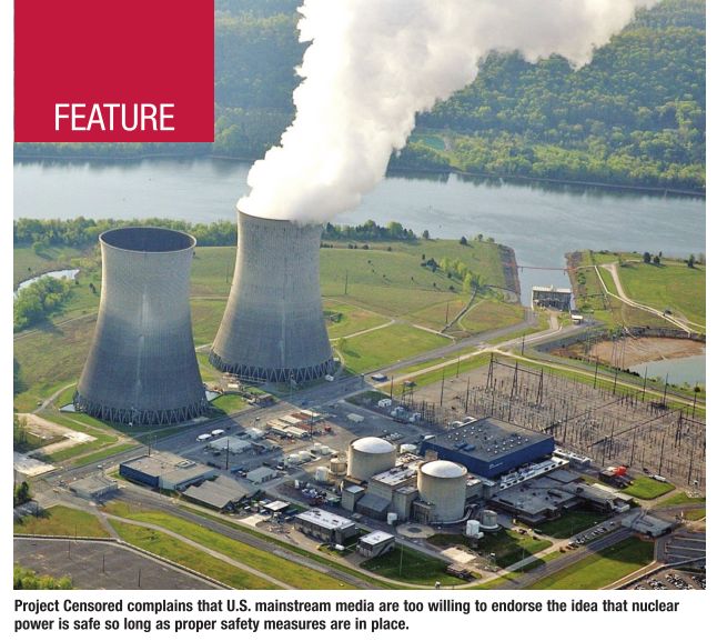 Project Censored’s critique of mainstream media’s treatment of nuclear power is that it’s too willing to endorse the idea that nuclear power is safe so long as proper safety measures are in place, and that major news publications readily go along with the nuclear industry’s branding of the power source as “clean” and “carbon free” when it’s really not.