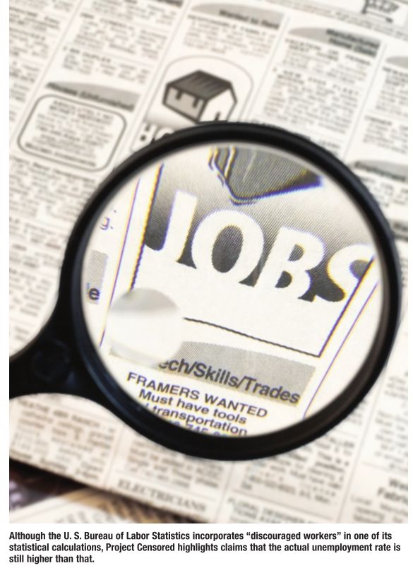 However, Project Censored highlights an article by Greg Hunter published on Information Clearinghouse, claiming that the “real” unemployment rate is actually 22.1 percent, or one out of five U.S. residents. Hunter’s claim is based on his interview with San Francisco-based economist John Williams, who maintains a website called Shadow Government Statistics. By ignoring the claims of this economist, Project Censored argues, the mainstream media is engaging in censorship.