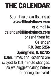 UIS International Festival Nov 11, 4:30-8:30pm, Professional storytellers, ethnic food, dance performances, activity booths and more. Free. Student Life Bldg. 206-6678. University of Illinois at Springfield, 206-6678.