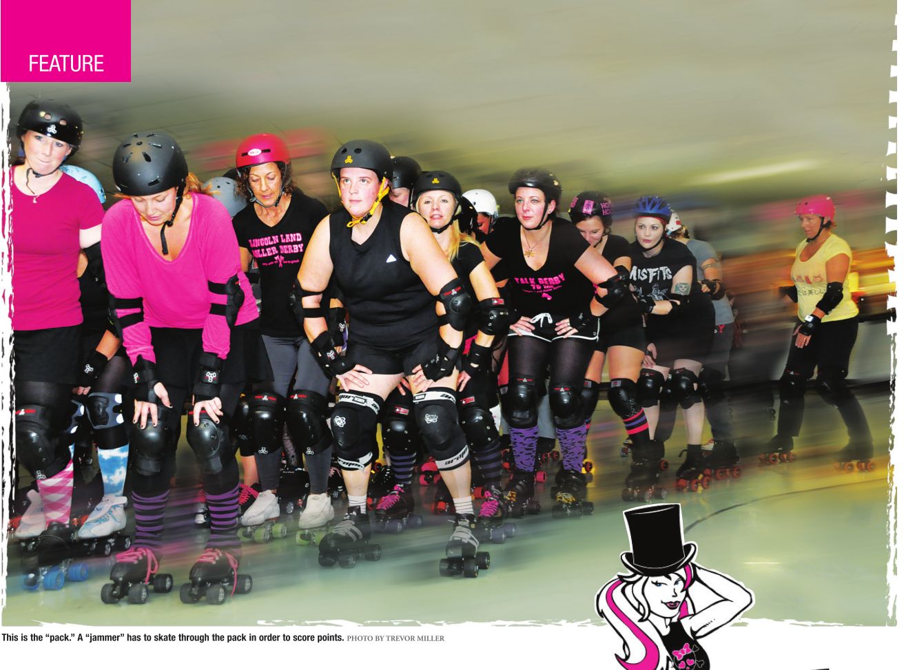 A whistle blows and these individuals merge into a single entity, jostling, jabbing and, yes, hitting – hitting hard – as they whirl around the roller rink.