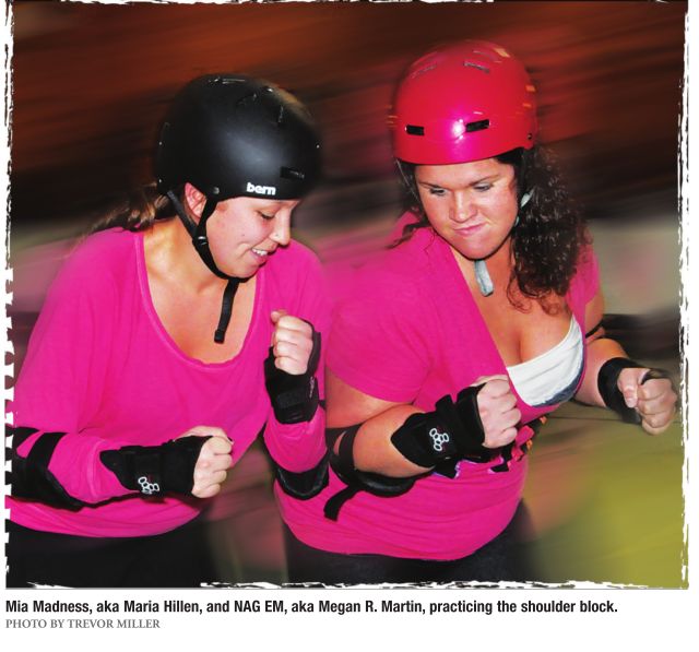 “Next, we actually walk slowly through a game of roller derby, so everyone can see how it works. We don’t do any hitting at this point, to show everybody the mechanics of it. Then the last part of the night, we actually play roller derby with some bumping and minor blocking.” Moore pauses, chuckles. “Some girls get a little more zealous than the others.