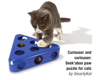 Smartykat Brushup self-grooming post was voted one of the Top 10 products at the 2011 Global Pet Expo by veterinarian Dr. Marty Becker of TV’s “Good Morning America” fame. Hundreds of flexible silicone bristles provide a feel-good massage while pulling away loose fur ($20, specialty stores.)