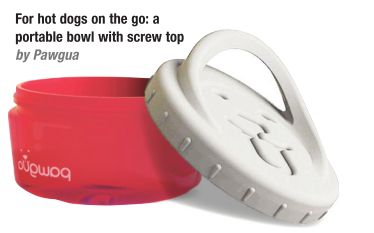 “More people travel with their pets nowadays,” says Levine. She stresses the importance of pet restraint while driving. “Just like texting and driving, a loose pet in the vehicle can be dangerous,” she says. Kurgo makes a variety of pet-carrying products. A Skybox Booster seat for puppies and small dogs up to 30 pounds lifts them up to provide them with a window view ($60, specialty stores); the Kurgo Auto Zip-Line tethers a dog safely, with a harness attached to a zip-line that runs between any two fixed points in the vehicle and allows a dog to walk back and forth, sit and stand ($38, specialty stores). Car carriers are especially important for cats, because most are not fond of travel. Levine suggests that animal lovers bring water for their pets during trips. Pawgua makes a portable, BPA-free plastic dog bowl for thirsty, outand-about pups ($15, specialty stores). The bowl keeps water cool and the top twists off.