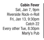 In 2005 this hardworking, easy-playing quintet of Zach Johnson (vocals, harmonica), Mike Eck (vocals, guitar), Danny Sronce (vocals, guitar), Geoff Ryan (electric bass) and Justin Schmidt (percussion, banjo) joined together to play true blues, country- and folk-based music in the Americana genre. With songs ranging from freshly penned originals to deep-rooted traditionals and covering artists such as John Prine, the Rolling Stones, The Band, Bob Dylan and Amos Lee, Cabin Fever uses the vast and undermined collection of American roots music to create a warm and fuzzy feeling that sneaks under the skin with familiarity and hangs around to elevate the mood and the mind. The band recently performed at First Night and begins recording this February for a summer debut release. Occasionally band performances include the horn section of Frank Trompeter (saxophones) and A.J. Good (trumpets) and other well-positioned guests. A bluesy acoustic offshoot of the band includes Ryan, Johnson and Sronce as Murder of Crows, appearing at Bob’s Butternut Hut on Jan. 6 and Jan. 20 at Harry’s Adult Daycare.