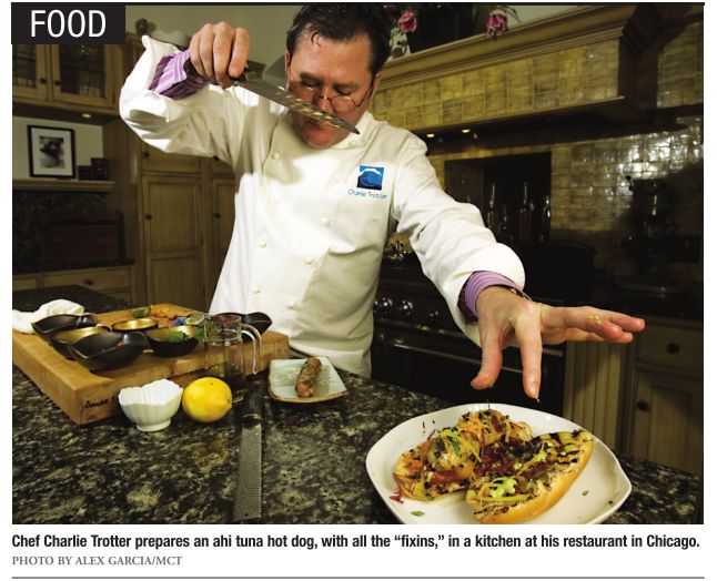 Eventually Trotter’s cuisine began seeming laughingly over-the-top to many. Esquire magazine commented that such dishes as Black Striped Bass with Fingerling Potatoes, Brandade, Roasted Blood Sausage, Olive Oil Poached Tomatoes & Red Wine-Wild Mushroom-Foie Gras Sauce “just sounds like something you hit with your car.”