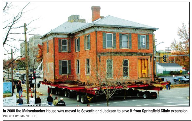 The Corneau house that now stands on the southwest corner of the Eighth and Jackson, across from the Lincolns’ house, was threatened with demolition by the 1960s. It was moved immediately north of the home to get it out of harm’s way, then moved again in the 1990s when the National Park Service returned it to its original site. Springfield Preservation, Ltd. moved two houses near the Statehouse that were slated for demolition to West Cook as part of the German Settlers Row project. Most recently, the Maisenbacher House was snatched from the voracious jaws of the Springfield Clinic neighborhood and reinstalled at Seventh and Jackson. Then there is the Iles House, which has changed addresses more often than a deadbeat dad trying to outrun process servers – the southeast corner of Sixth and Cook streets to start, then 1825 S. Fifth and since 1998 its present site on South Seventh at Cook.