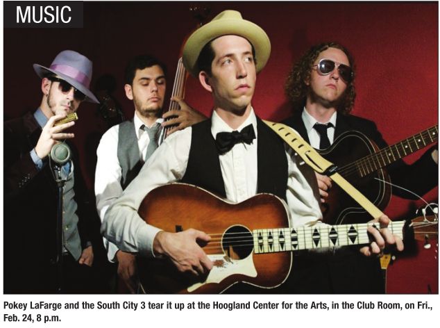 Pokey LaFarge originates from St. Louis and is making a splash everywhere, coming up with new ways to play old music. Considered by many (you know, those folks) to be one of the most inventive of the purists playing the classic, blues-based form that encompasses early jazz, string ragtime, country blues and western swing and that laid a foundation for a good deal of 20th century popular music. I hear tell Pokey is a treat to behold, a treasure to hear and the South City 3 is a dance band beyond compare.