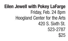 MUSIC | Queen of minor key Singer/songwriter Eilen Jewell is Boston-based, but don’t let that fool you. This country and blues-infused contemporary folk or alt-country singer, blessed with a hint of Billie Holiday, was born in Idaho, schooled in Santa Fe, lived in LA, and has performed all around the world. Her first album, Boundary Country, led to signing with Signature Sounds and a national release, Letters from Sinners and Strangers. Queen of Minor Key was released in 2011. The praise for Jewell grows with acclaim from American Songwriter, USA Today Popcandy, Pollstar and more. Joining Jewell on stage is St. Louis Americana roots band Pokey LaFarge and the South City Three who Spin Magazine called “best discovery” at Newport Folk Festival in 2010. This is another great WUIS Bedrock 66 Live concert sponsored by Athens State Bank, E & F Distributing, Illinois Times and WUIS. See also