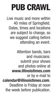 Find more details and gigs in our online calendar at www.illinoistimes.com.