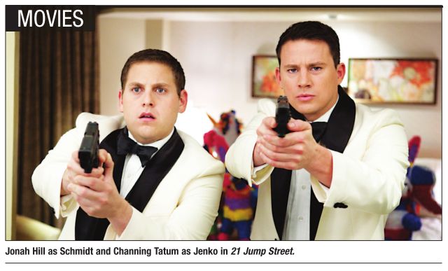 In an effective prologue we meet Schmidt (Hill) and Jenko (Channing Tatum), two high school students who are as far apart socially as Mercury is to Pluto. While the former is awkward socially but a whiz in the classroom, the latter is a popular jock who’s as dumb as a post. They meet again years later in police academy and by helping each other with the gaps in their education, they become close and are eventually assigned to patrol a local park on bicycles, not exactly the high-action detail they’d hoped for. When their first arrest goes horribly wrong, they’re assigned to a special unit housed in an abandoned Korean church at 21 Jump Street. This division consists of babyfaced cops who are young enough to go undercover at local high schools to ferret out wrongdoing. Deputied by their foul-mouthed superior, Captain Dickson (Ice Cube), to enroll at a school where a deadly homemade drug is making the rounds, a schedule change finds Schmidt rubbing shoulders with the cool kids while Jenko is stuck with the science nerds.