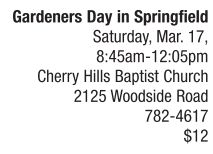 The University of Illinois Extension Sangamon and Menard County Master Gardeners are putting on a Gardeners Day Saturday, March 17, at Cherry Hills Baptist Church. Nine one-hour seminars are slated to be facilitated by the U of I Extension specialist, Master Gardener volunteers and local horticulture experts. Seminar topics include: Native Wildflowers, Growing Gourds, Prairie Home Herbs, Seed Starting and more. Pre-registration is encouraged, but you can register at the door beginning at 8 a.m. A brochure and online registration is at web.extension.illinois.edu/lms.